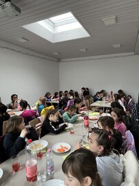 Am Morgen starteten wir mit einem Fangis und einem spanischen Tanz im Kreis. Anschliessend wurde Pantherball gespielt, bei dem sich die beiden Gruppen nichts schenkten. Alle versuchten so schnell wie möglich ihre Gegnerinnen zu treffen oder die bereits getroffenen Mädchen wieder zu befreien. Die Mädchen konnten sich danach beim gemeinsamen Znüni wieder stärken.