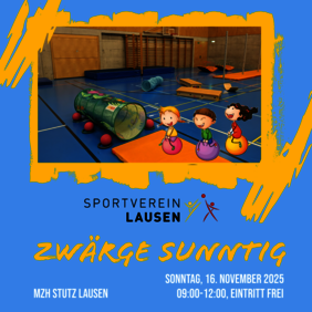 Am Sonntag 16. November 2025 führen wir den nächsten Zwärge-Sunntig durch. Der Zwärge-Sunntig ist eine Bewegungslandschaft für Kinder von 0-6 Jahren.